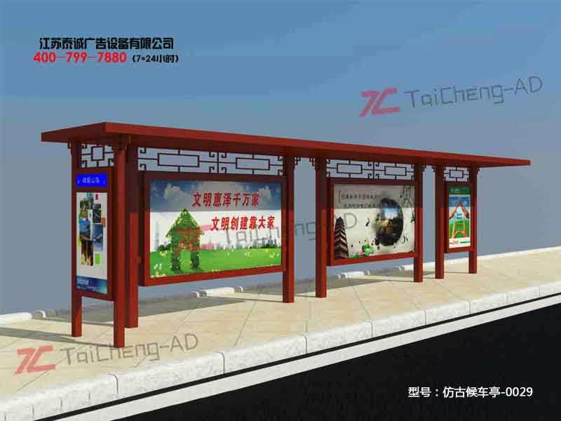 歡迎光臨江蘇泰誠設備科技有限公司 公司專業生產定做公交站臺、候車亭,宣傳欄,標識標牌等系列產品!